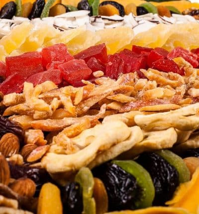 ט”ו בשבט ידוע כחג בו נוהגים לאכול פירות יבשים איכותיים ובריאים. עם זאת, אנשים רבים נוהגים בדרך קבע לאכול אותם מכיוון שהם תורמים לגוף מינרלים שונים כמו: מגנזיום, אשלגן, אבץ, סידן וברזל וכך נמנעות מחלות כמו אנמיה, כולסטרול ולחץ דם לא תקינים. מלבד זאת הם עשירים בסיבים תזונתיים ומעלים את רמת האנרגיה בגוף. כל עוד אוכלים אותם במינון שומרים על רמת סוכר תקינה והם מפחיתים את הסיכוי לחלות בסוכרת ומחלות סרטן שונות. ניתן להזמין מגדל פירות יבשים מרשים של 2-3 קומות כאשר בכל קומה צלחת פלסטיק מעוצבת בגודל שונה. אפשרות נוספת היא לשלוח את הפירות היבשים על מגש וניתן אף לשלב אותם עם פירות טריים או סושי פירות.