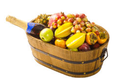 קיווי, תפוח, ענבים, מלון, תפוז, מנגו, רימון, אפרסמון, קלמנטינה, אננס, אבטיח, קוקוס, פיטאייה, פמלית אדומה