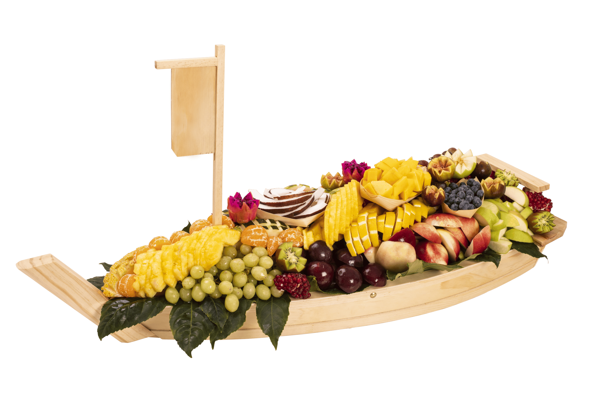 סירת פירות מרשימה במיוחד עם מגוון גדול של פירות העונה